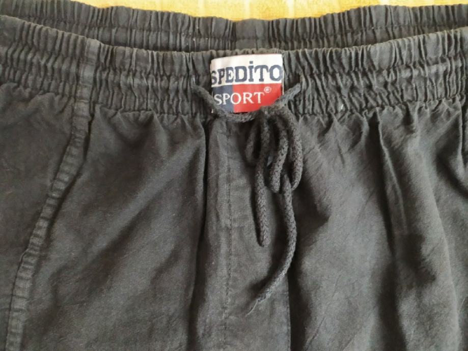 Kratke hlače "Spedito" vel XL. Crna boja. materijal 100% pamuk. Decentne casual prozračne lagane hlače, odlične za ljeto/proljeće. Iznadprosječna kvalitete materijala. Struk 43cm (u zategnutom stanju - rastezljiva guma), dužina 72cm, širina nogavica 25cm.