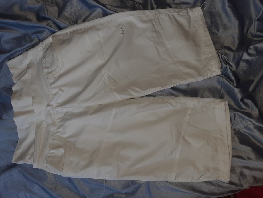 Par puta nošene bijele Nike hlače do koljena. Imaju dodatnu gumu u struku. Jako lijepog kroja. Vel. 38 -40