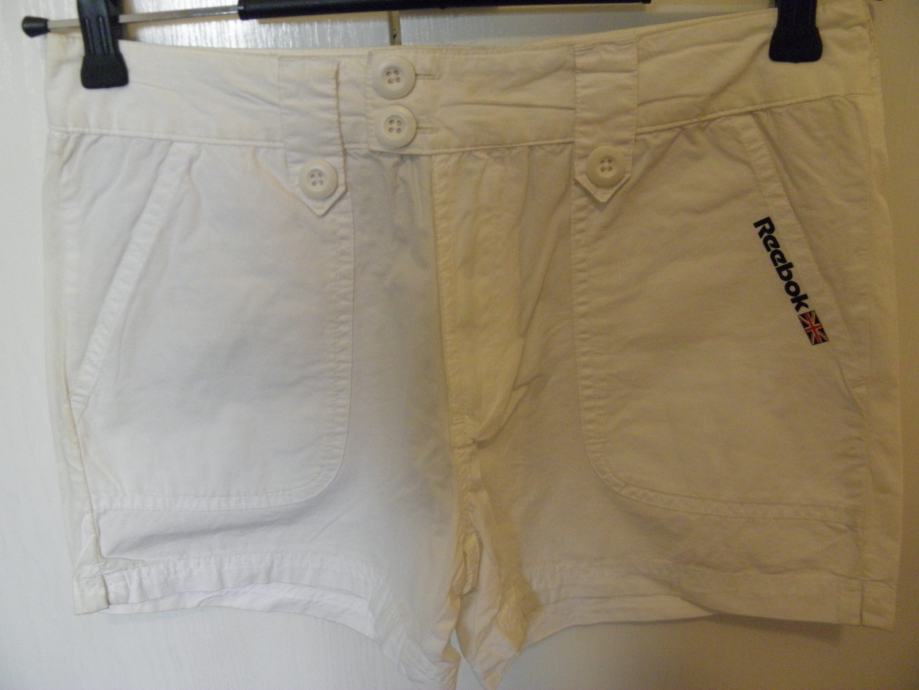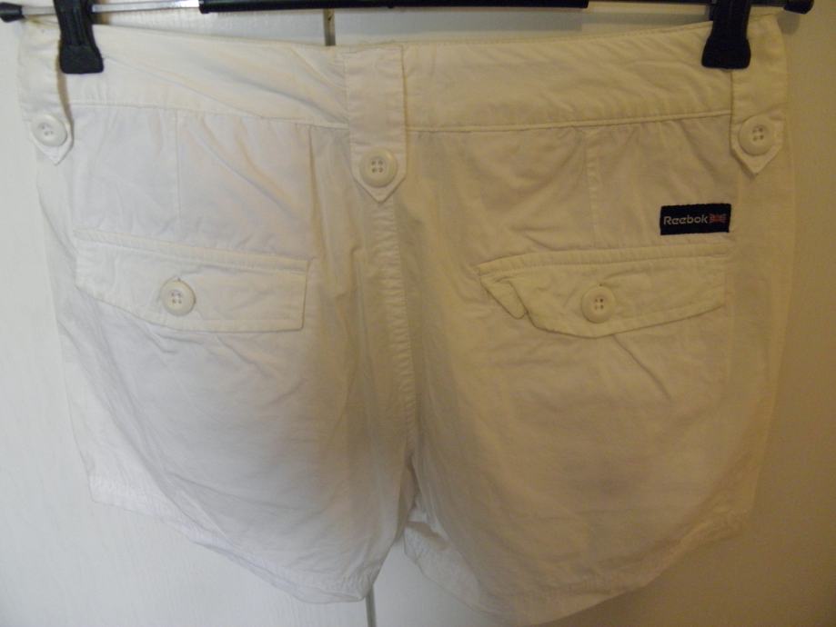 Bijele ima u veličini S, širina struka im je 37 tj.74 cm, kopčaju se na 2 gumba i cif. I sa prednje i sa stražnje strane su po 2 džepa. Dužina nogavica je 31cm.