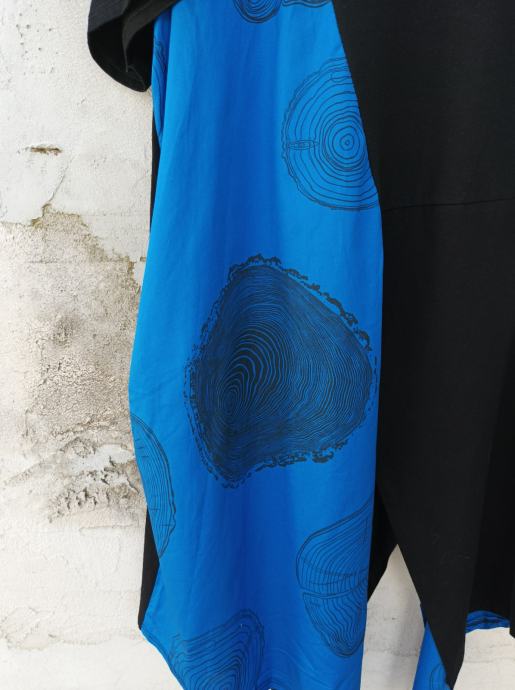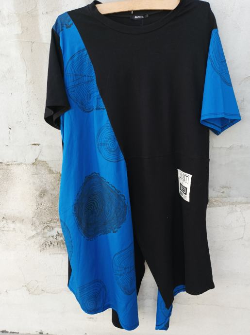 Nova, s etiketom tunika u kombinaciji s plavim i crnim. Asimetrična. Drugačija. Najkraća duljina je 58 cm. Krakovi od 93 do 111 cm. Obujam prsa 120 cm. Najbolje za osobe 44/46.
