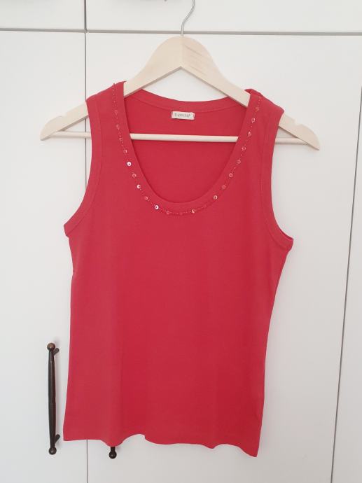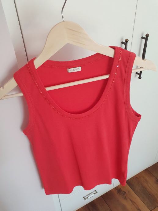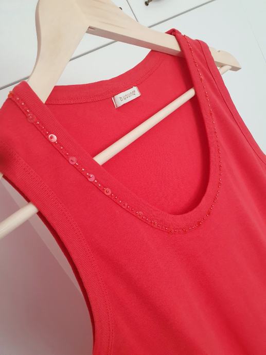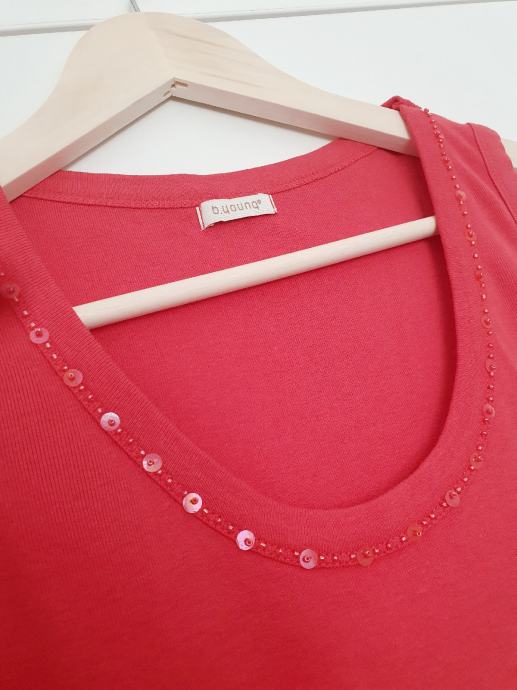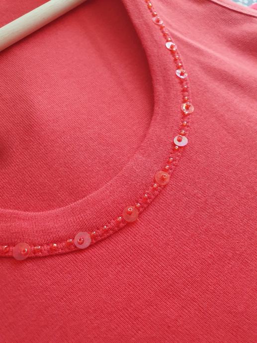 Oko vrata ima našivene perlice.