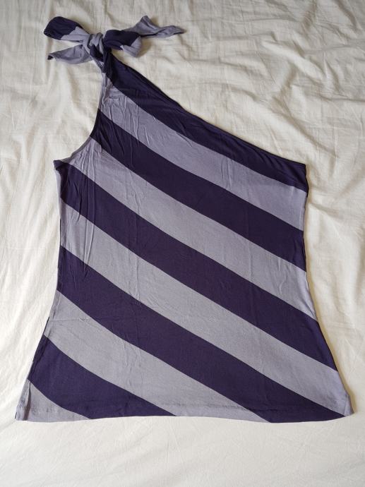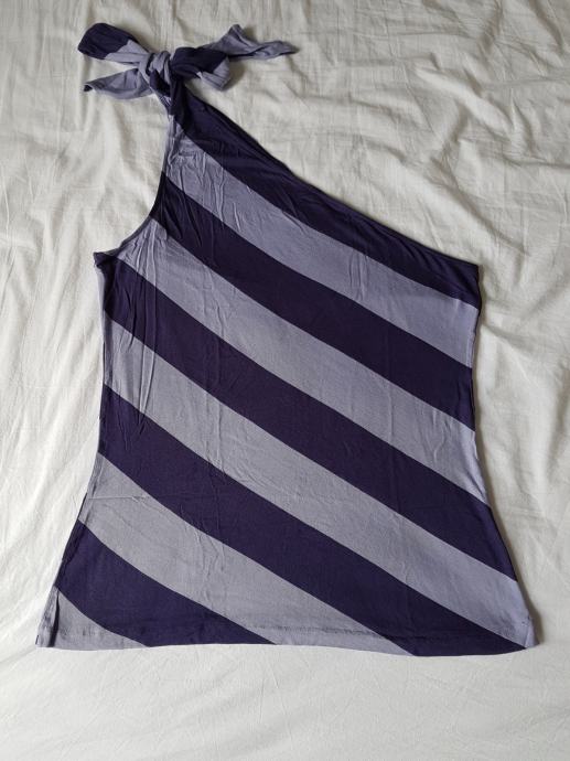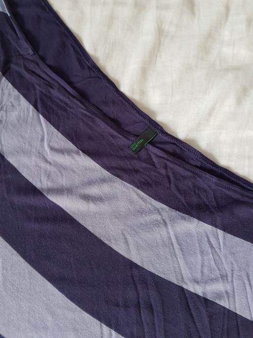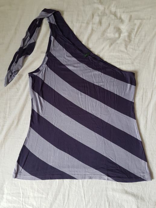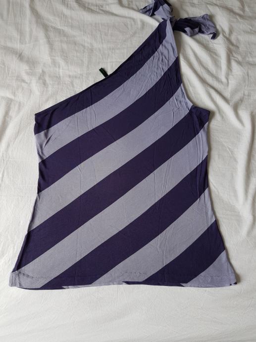 Majica marke Benetton, na ljubičaste pruge, veže se na jedno rame. Veličina između M i L (broj 40). Lagana, rastezljiva, malo nošena, očuvana.
