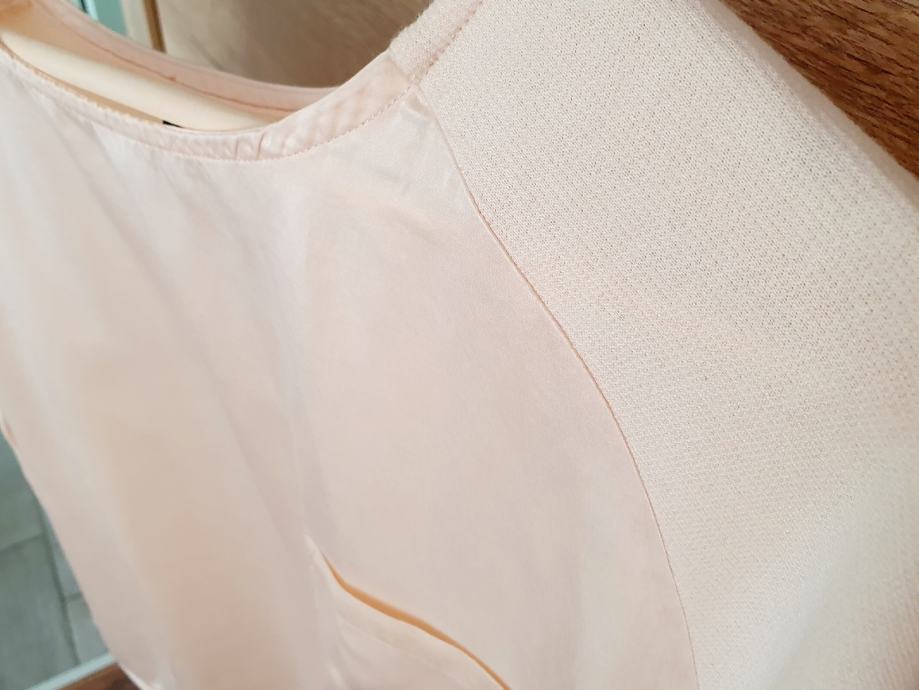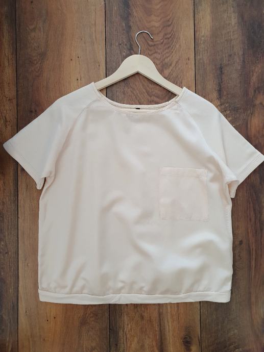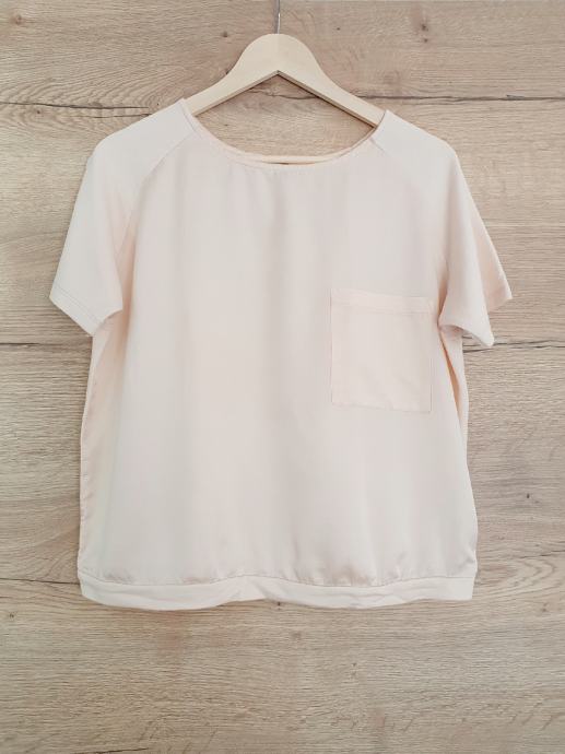 Benetton nježno roza majica u kombinaciji materijala. Sprijeda je pamučna svila dok su rukavi i stražnji dio od pamuka.