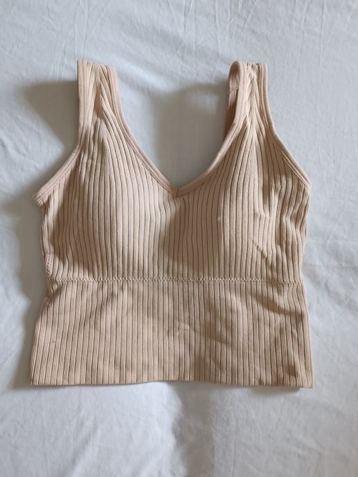 Bež crop top veličina S, s umecima za grudnjak, elastična.