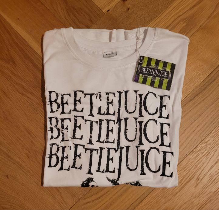 Bijela majica s Beetlejuice print, vel. M