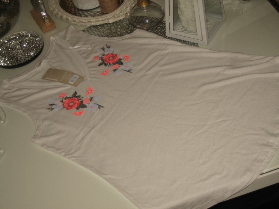 BIJELA MAJICA S CVJETNIM APLIKACIJAMA - NOVO
