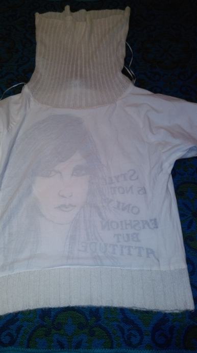 BIJELA VUNENA ROLKA KRATKI RUKAV PODMAJICOM 40 42 M/L DŽEMPER PULOVER
