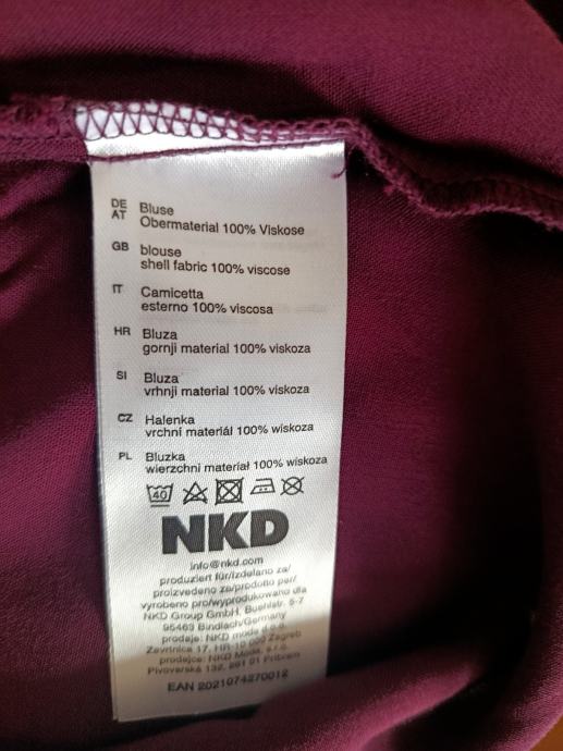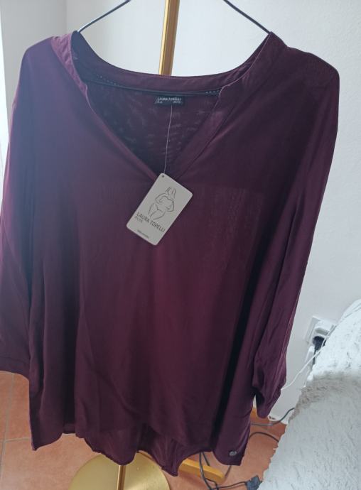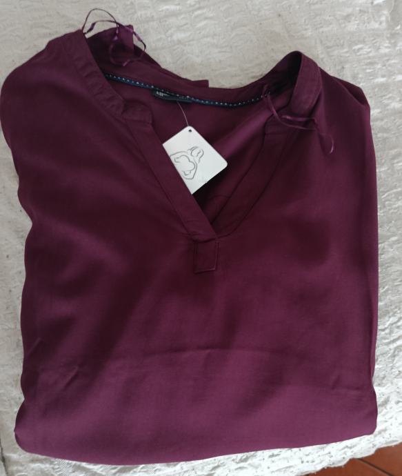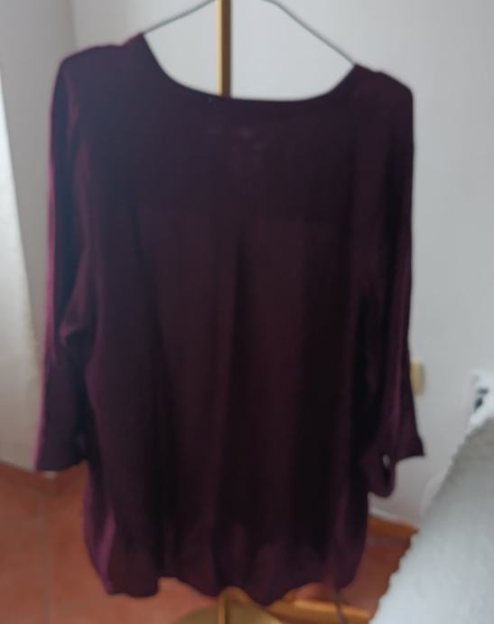 Bluza - košulja - tunika je ležernog kroja od vrlo ugodne i lagane tkanine koja lijepo pada i ne otkriva ništa što ne treba otkriti. V izrez, a rukavi su 3/4 udobne širine sa mogućnošću podešavanja njihove duljine pomoću vrpce u unutrašnjosti. Boja je prekrasna bordo i ono što ju možda čini posebnom je malo veća duljina stražnje strane.