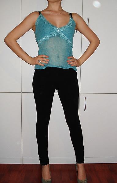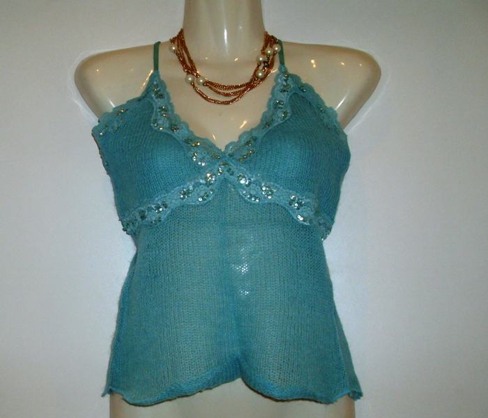 Tirkizni vuneni topić na bretelice sa decentnim sjajnim detaljima ispod prsa i oko dekoltea, vel. S Topić je novi i idealan za razne kombinacije.