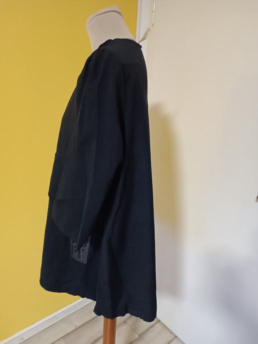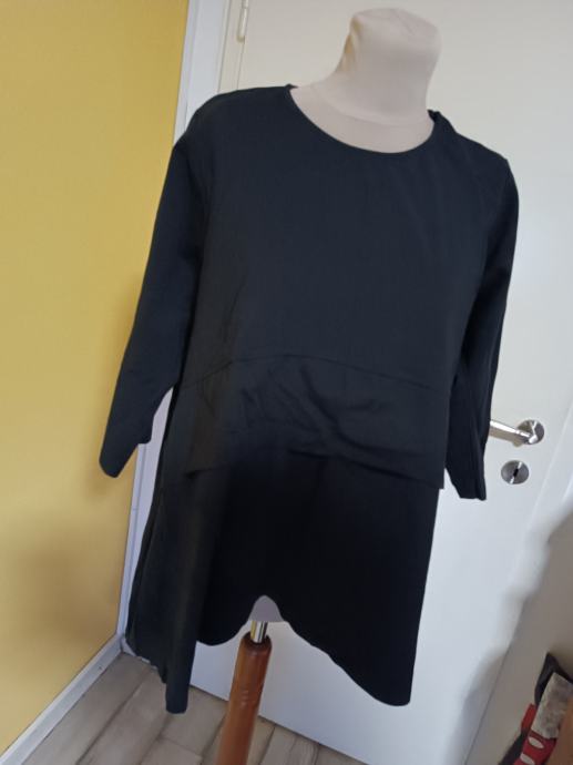 Vrlo zanimljiva crna asimetrična tunika sa slojevitim rubovima. Lepršava, moderna. Pamuk i poliamid. Predivno pada. Konfekcijski brojevi 44/46/48.