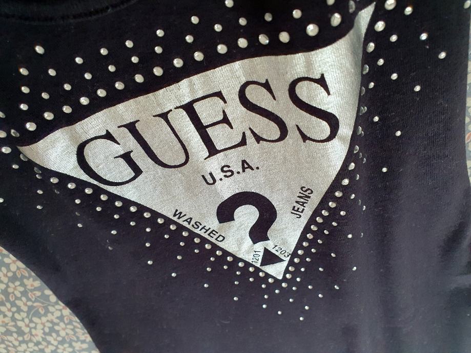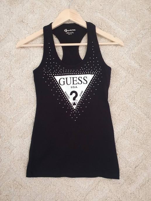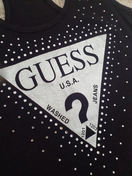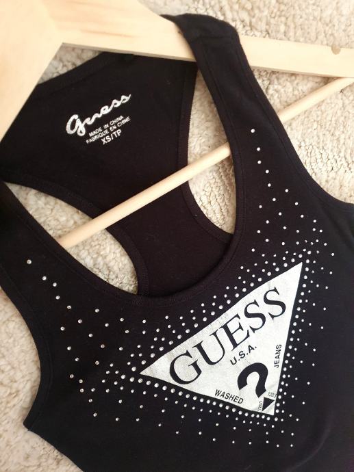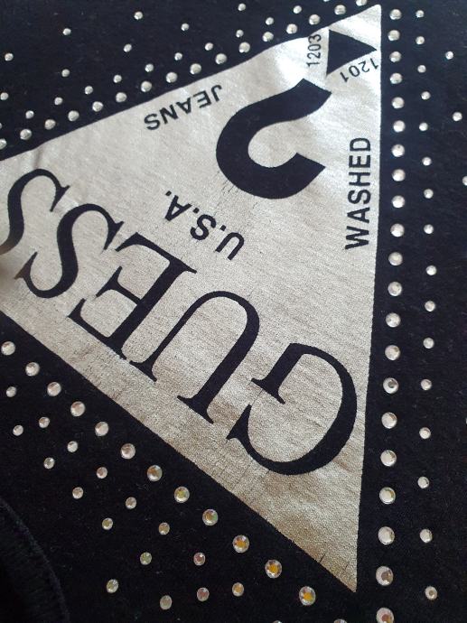 Original crna Guess kanotjera sa srebrnim printom, svi kristalići na broju.