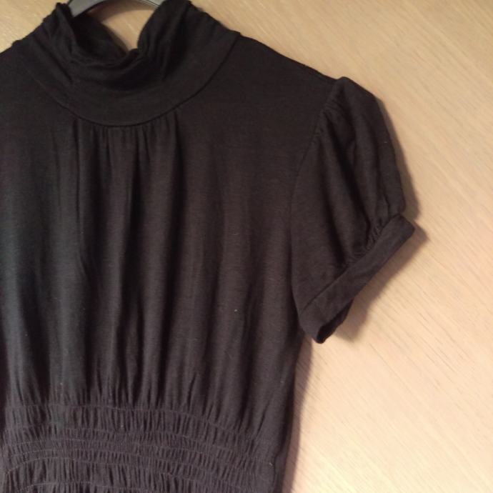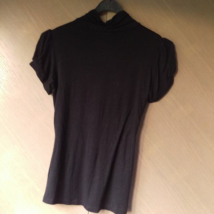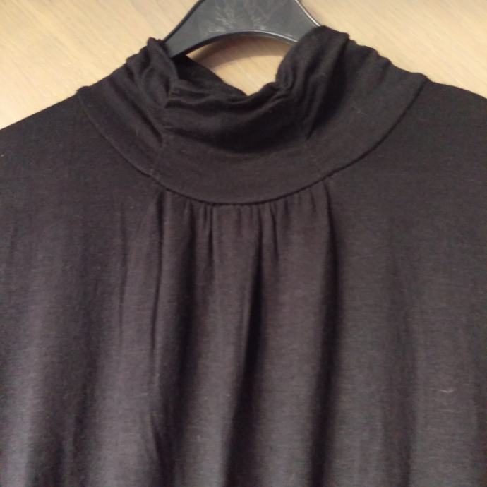 Romantična crna majica s kratkim rukavima i visokim ovratnikom.