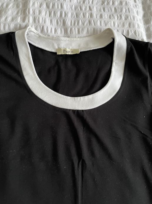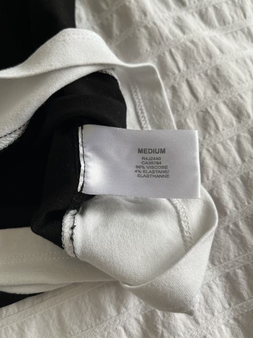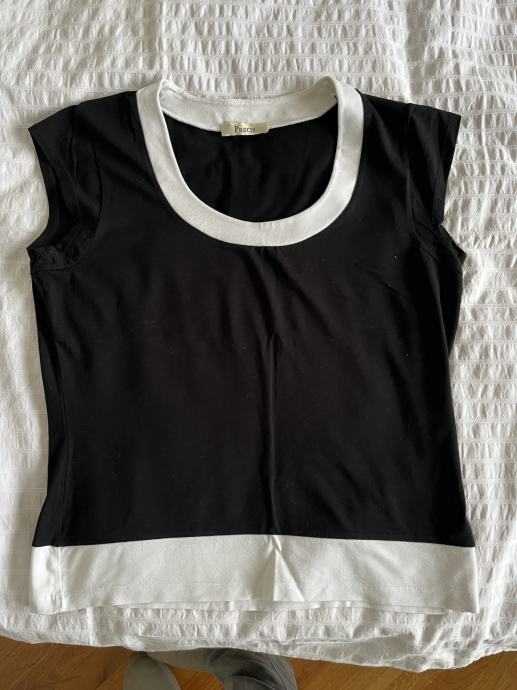 Crno-bijela majica, veličina 36, malo nošena, očuvana. 4% elastin i 96% viskoza.
