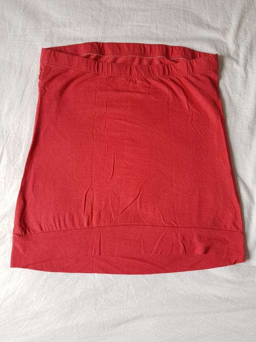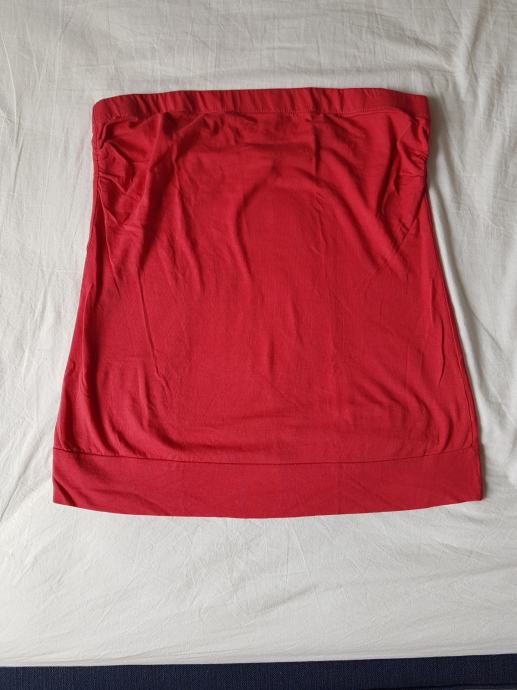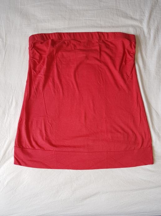 Crveni pamučni top, sa elastičnom gumom uz gornji rub što omogućava širenje u prsima te čvrsto drži top da ne padne. Malo nošen, očuvan. Veličina na deklaraciji L, odgovara broju 40.