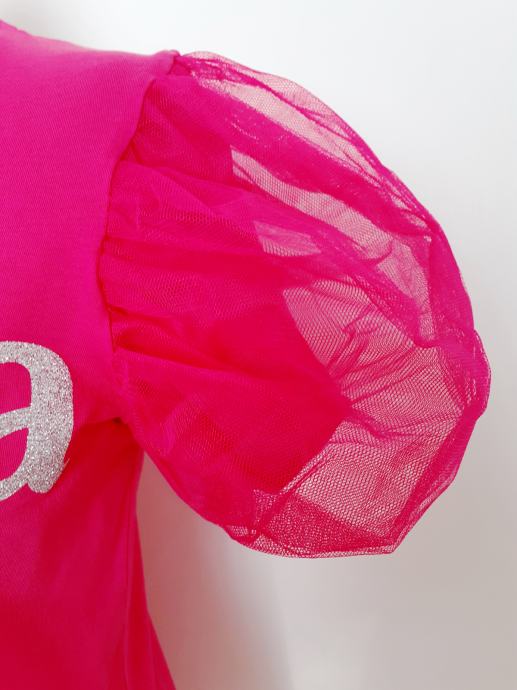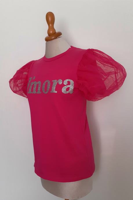 Ova zaista preslatka, izuzetno atraktivna majica izrađena je od lagane pamučne tkanine i puff rukave od tila.