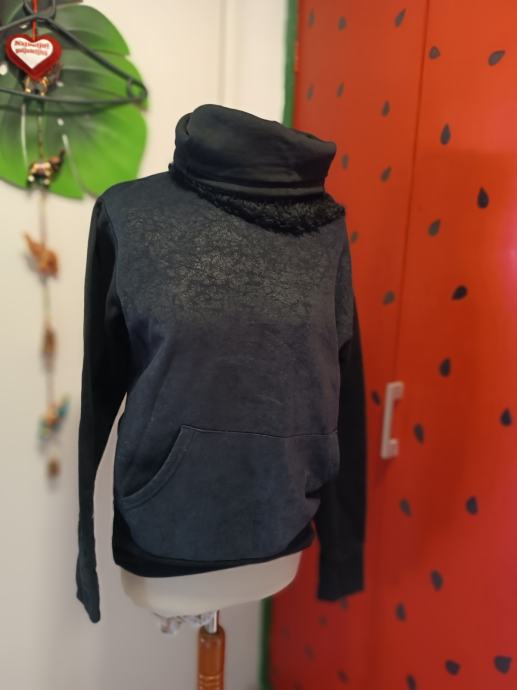 Neobičan materijal, otkačen model. Veliki mekani ovratnik. Na prednjem dijelu džep. Pogodan za hladne dane.