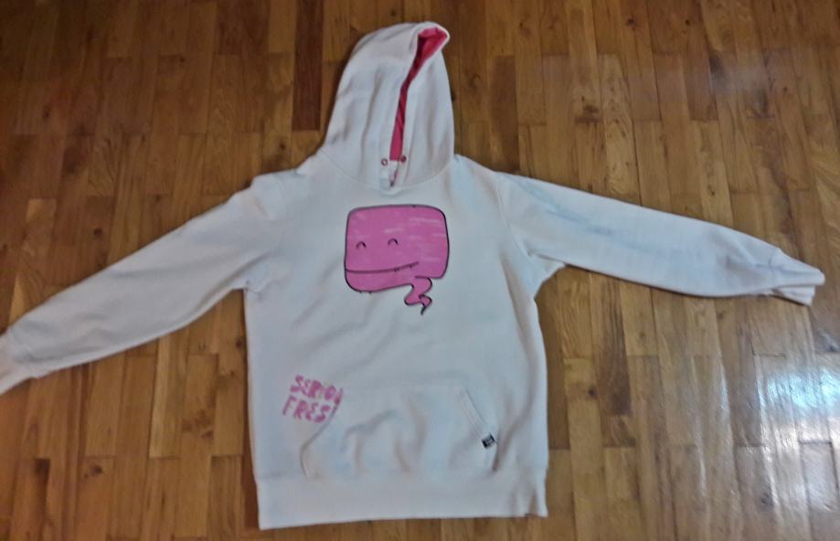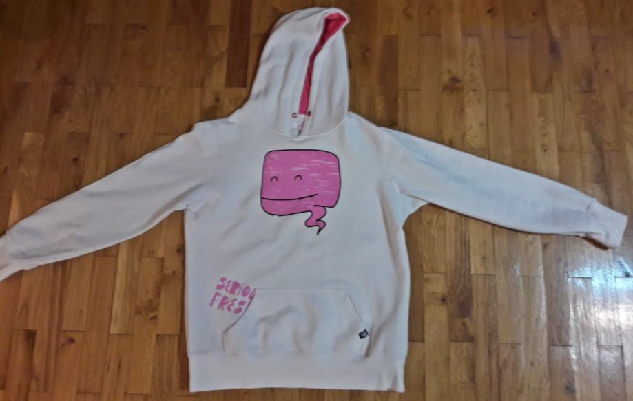 Prodajem toplu duksu bijele boje sa printom. VELIČINA: XL. Nošena je, oprana.