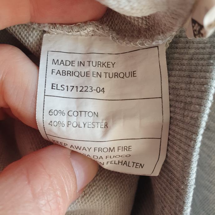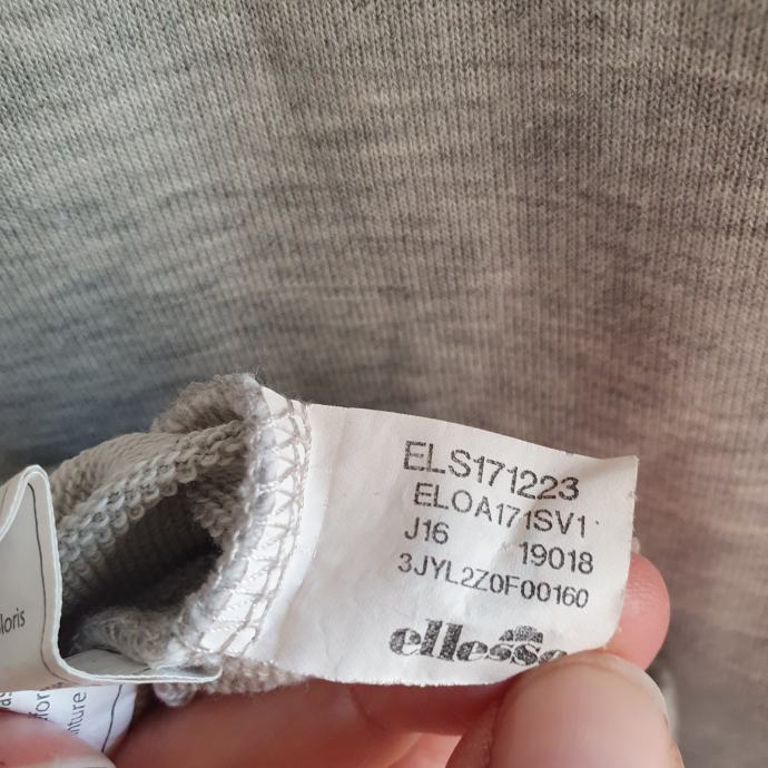 Ellesse siva duksa M. Mjere su prsa 51 cm, dužina 66 cm. Sastav je 60 % pamuk, 40 % poliester.