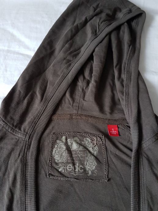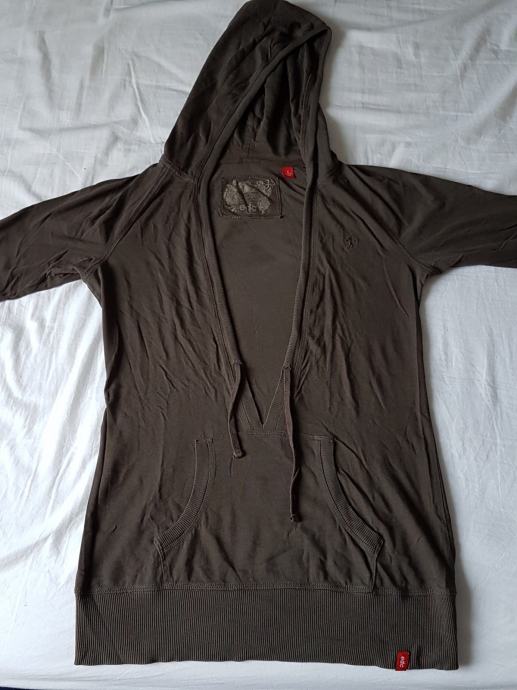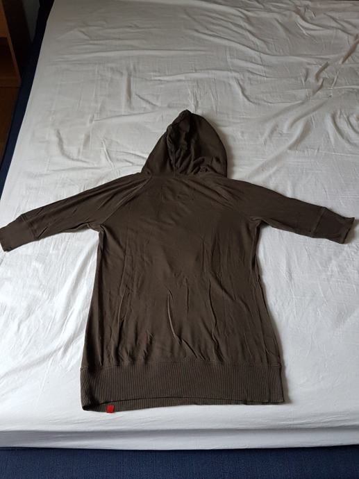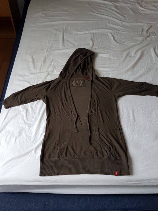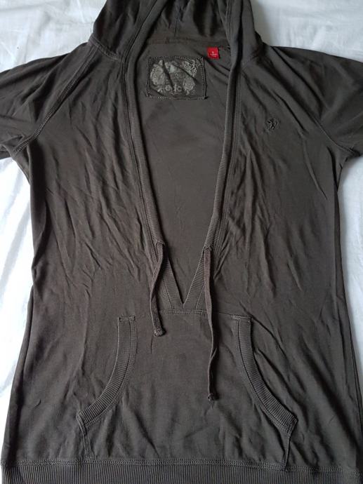 Tamnozelena pamučna majica marke Esprit s kapuljačom, kratkih rukava, ima špagicu pa se može kapuljača nategnuti. Nije jako debela i super je preko drugih majica. Veličina na deklaraciji S, ali se dosta rasteže te stane i M. Nošena svega par puta, odlično očuvana.