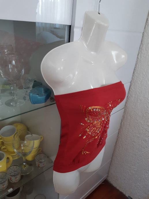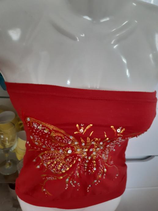 EXTYN bordocrvena majica- topic s elastinom, zlatovezom i perlicama, vel. S.