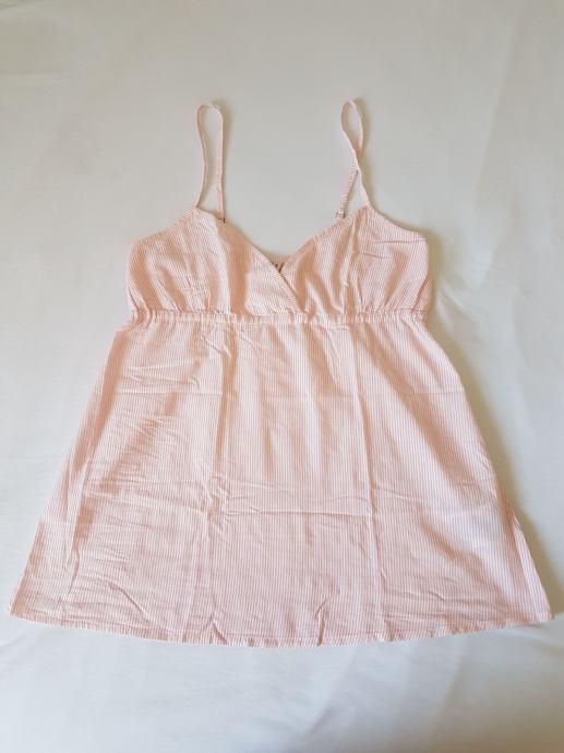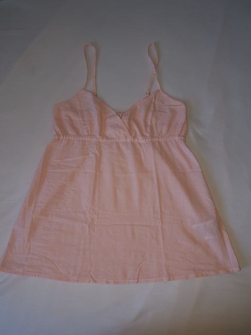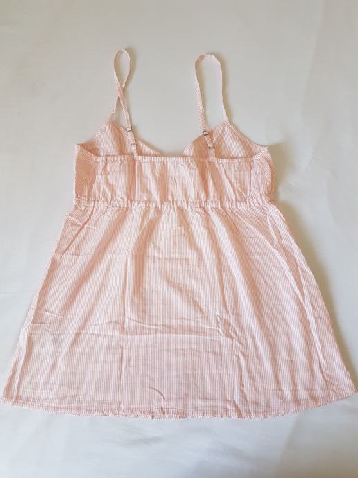 Fishbone ljetni top na bretele, na rozo bijele linije / crte. Ima gumicu odostraga te je rastezljiv u prsima. Bretele se mogu namještati po dužini. Veličina M. Malo nošen, očuvan.