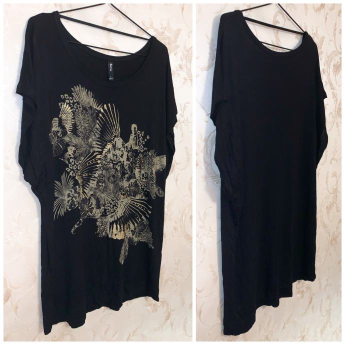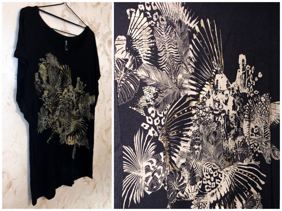 Crna majica sa bakreno-zlatnim printom i zakovicama.