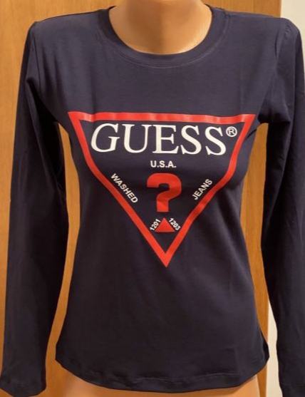 GUESS ZENSKA MAJICA ,TAMNOPLAVE BOJE,DUGI RUKAV TANKI,IDEALNA ZA JESEN,JAKO UGODNA I FINA ZA NOSENJE. MATERIJAL 95% PAMUK I 5% ELASTIN. VELICINA S , M , L , XXL. CIJENA 32 EURA. MOGUCNOST PLACANJA POUZECEM.