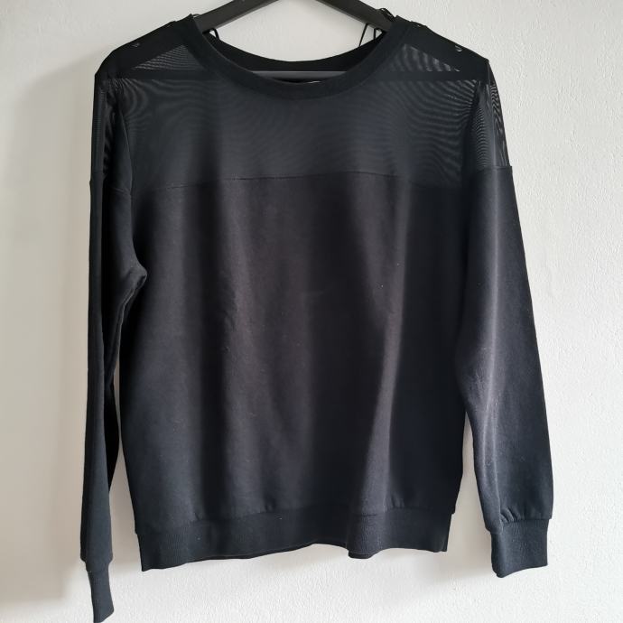 Moderna crna majica s dugim rukavima, posebna - prozirna ramena.