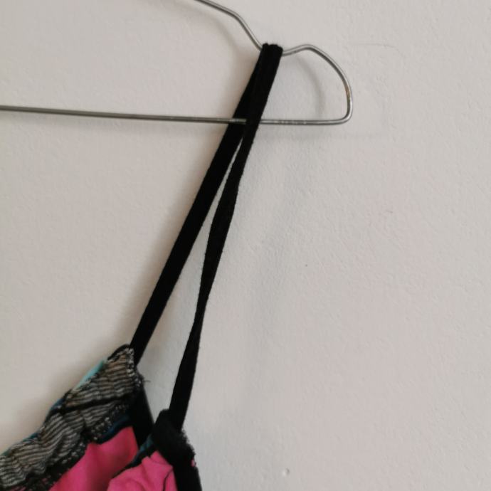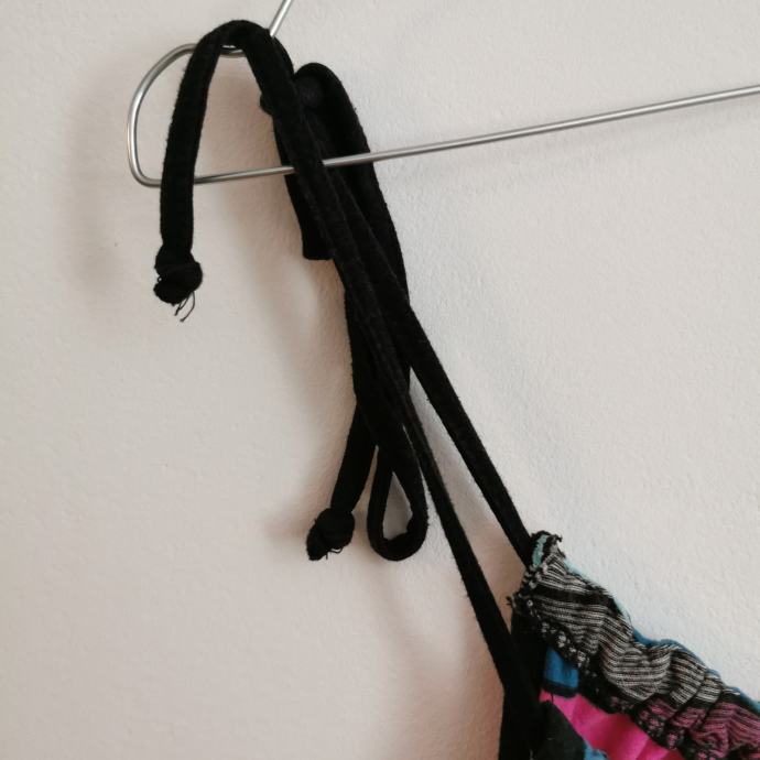 Bez rukava, na desnom ramenu se veže u mašnu, a na lijevom je naramenica.