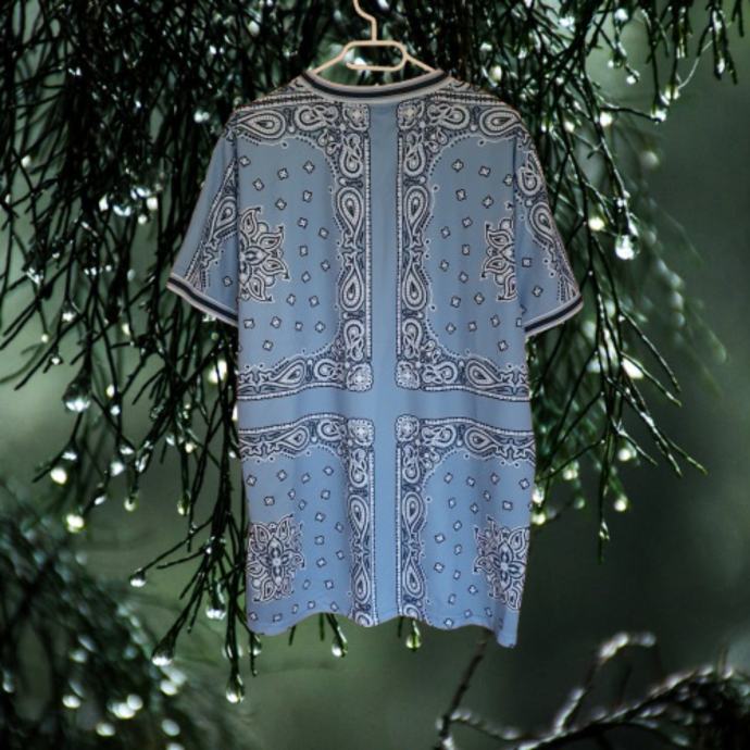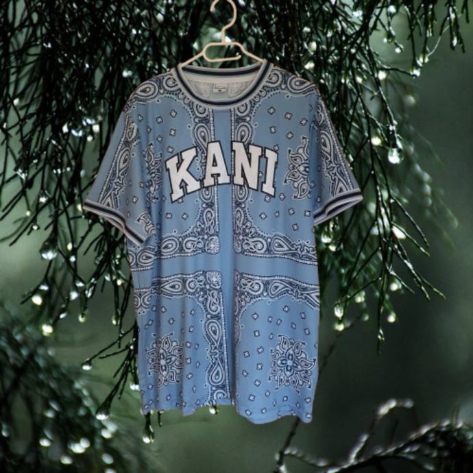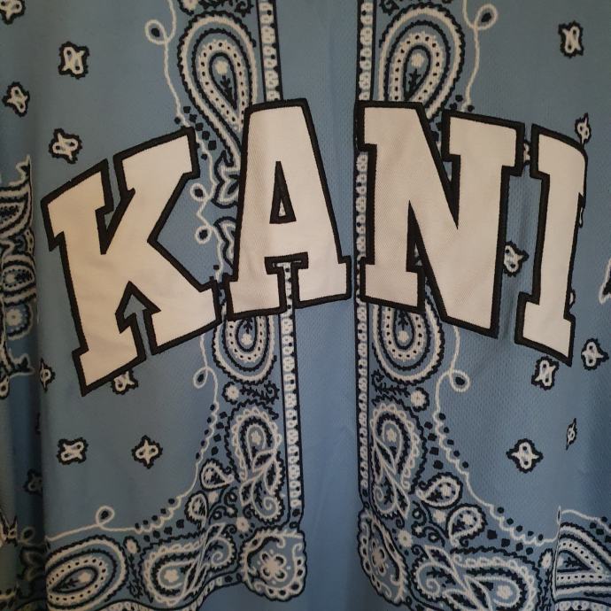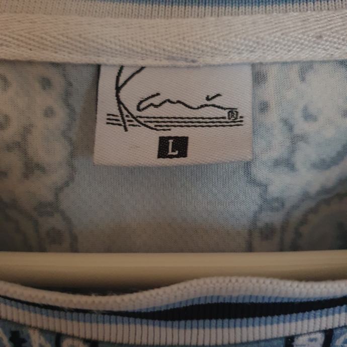 Plava Kani majica s prepoznatljivim bandana uzorkom u odličnom rabljenom stanju. Majica je veličine L. Savršena za ljetne dane i casual kombinacije. Mjere su ramena 49 cm, prsa 64 cm, dužina 80 cm. Sastav je 100% poliester.