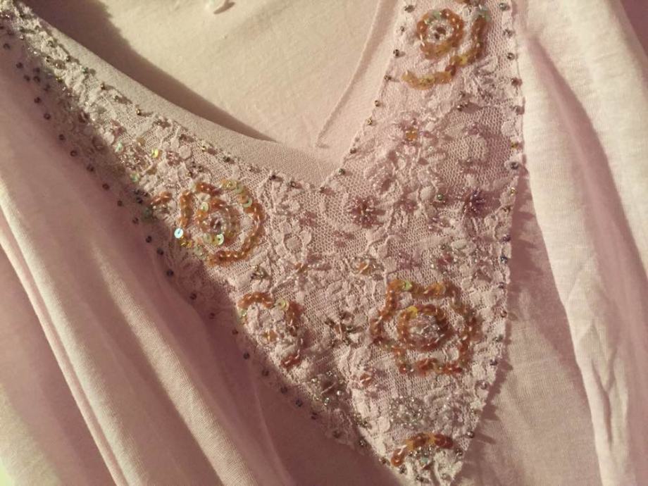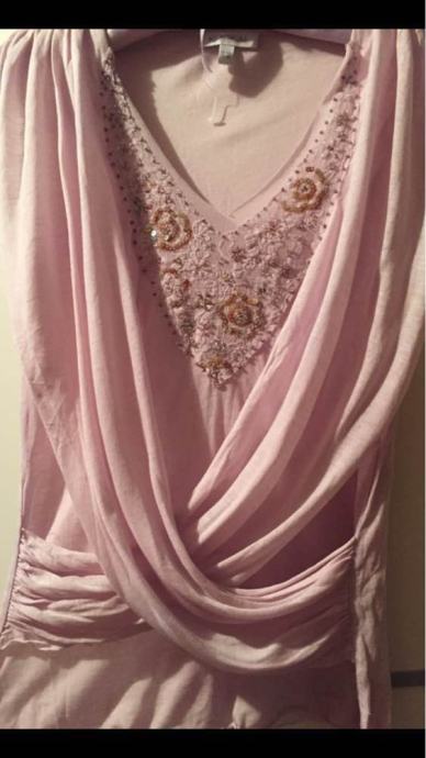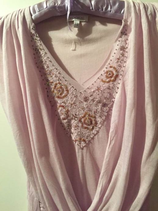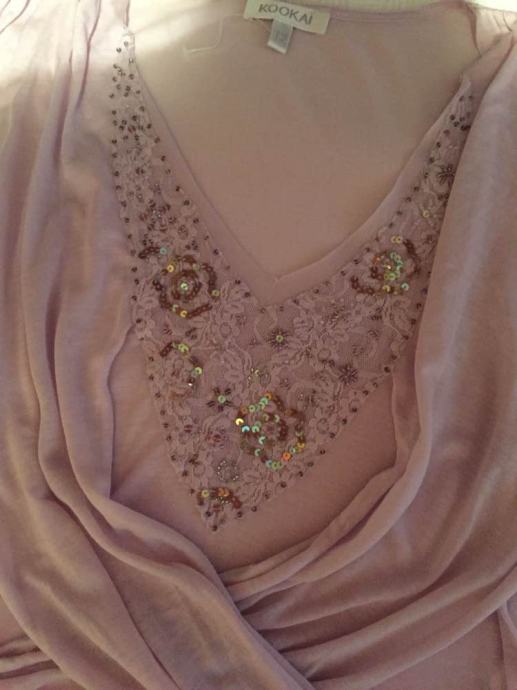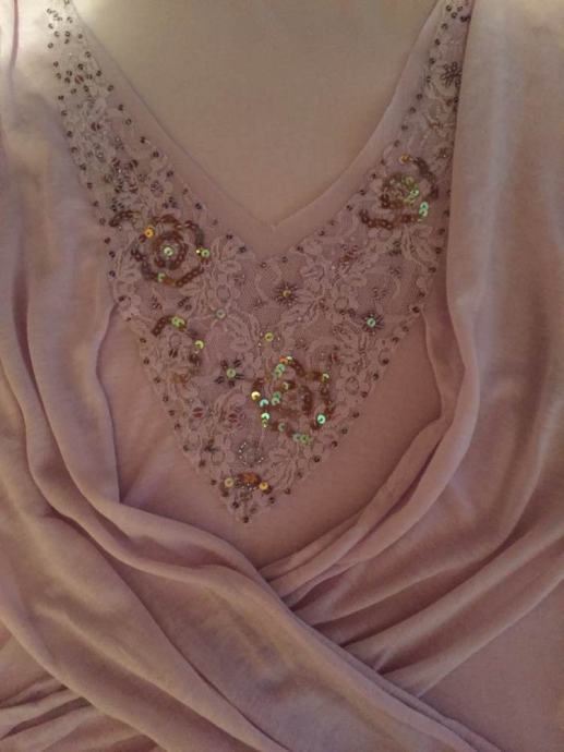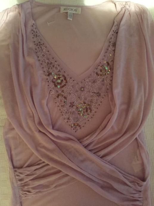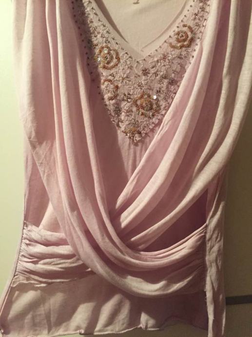 KOOKAI efektan top majica na preklope..pastelno roza lila .sa kristalima i šljokicama izvezenih na tilu..vel.F 2.....EU 38-40-42....viskoza ..elastan...novo..nenošeno!