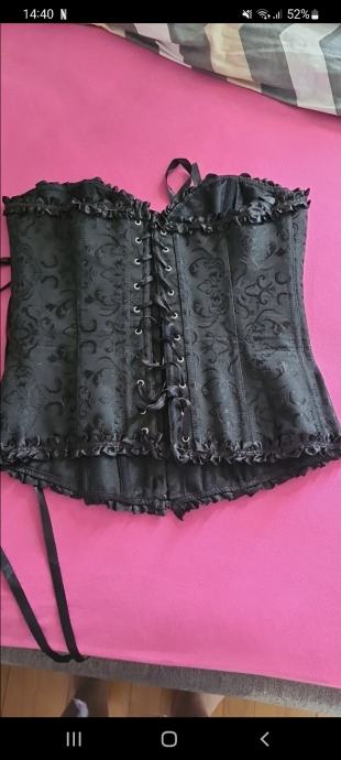 Prodajem nikad nosen crni korzet za svecane prilike,odgovara velicini m,kosarice 75b. Nisam za zamjene