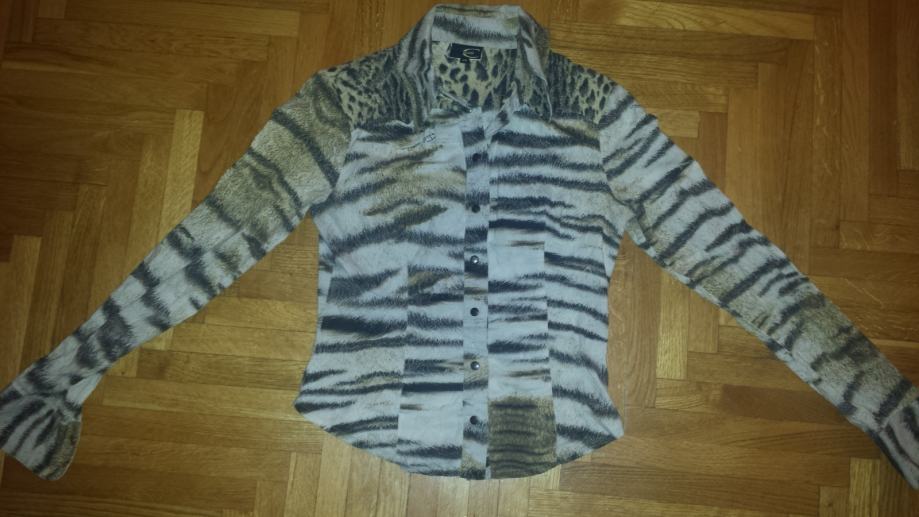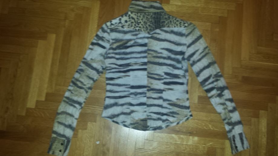 Original Just Cavalli košulja prekrasna -animal / zebra leopard / prepoznatljivi Cavalli tigrasti materijal logo na nitnama . izuzetno atraktivna slim fit strech materijal. vel XS extra small ali odgovara i vel SMALL / !! jako puuno placena -100% original .