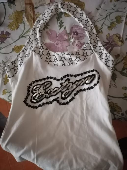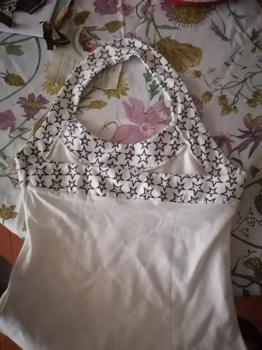 Bijela s ókruglim ovratnikom s crnim uzorkom i crnim sjajnim perlicama, vel. S