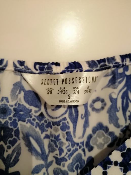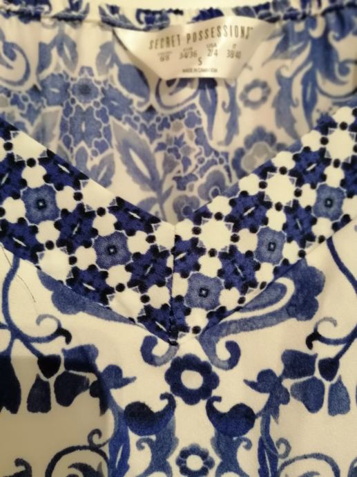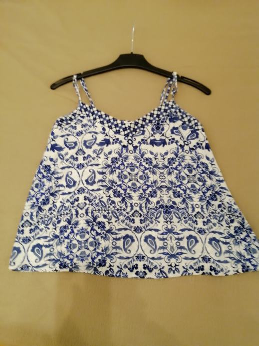 Prodajem novu majicu koja je obučena ali ne odgovara na bretele marke "Secret Possesions", vel. S. Naramenice se mogu naštimati na željenu duljinu. Mjere: dužina majice od gore do dole 40cm, šrina majice na dnu 57cm, širna gornjeg dijela ispod prs 40cm. Majica je lagana,prozračna, idealna za ljeto....Etikete nema.