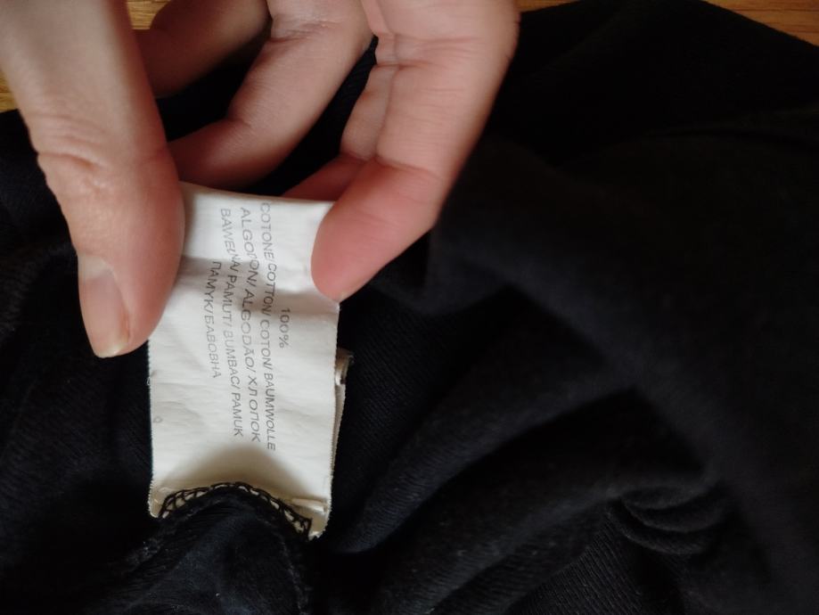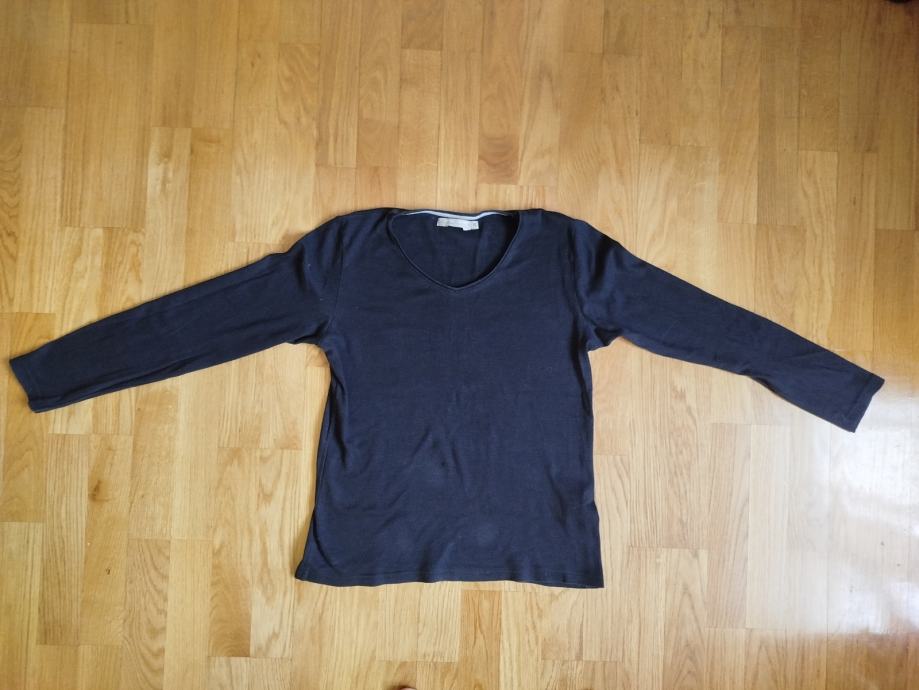 Majica dugih rukava. Boja crna. V izrez (nije dubok). 100 % pamuk