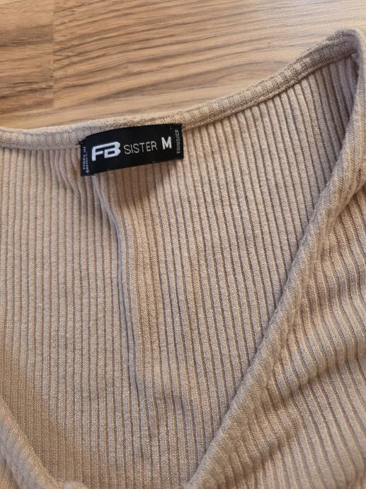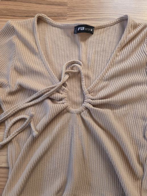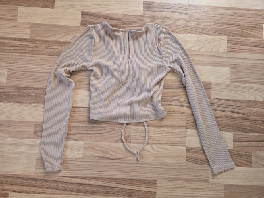 Majica dugih rukava, sa prijeda se veže da izgleda kao da ima ukras i dekolte, crop