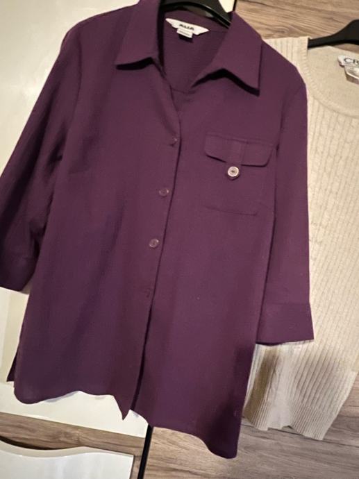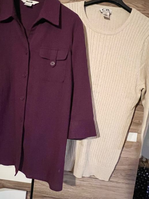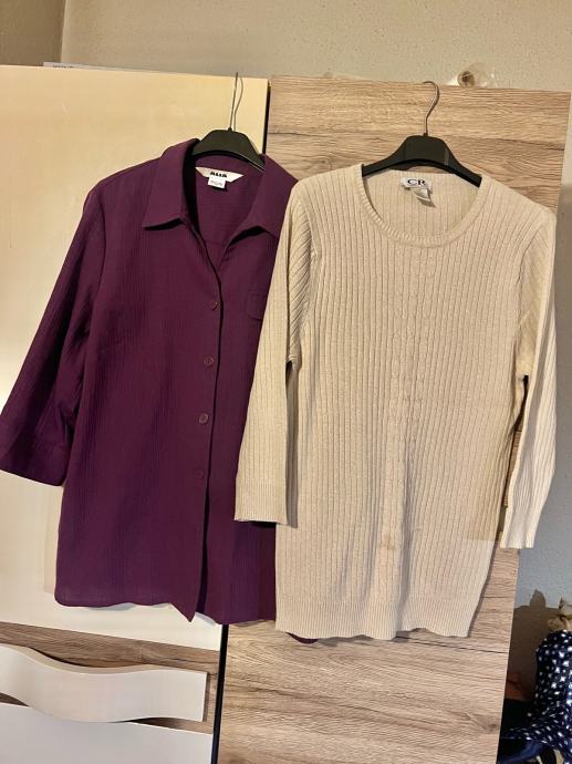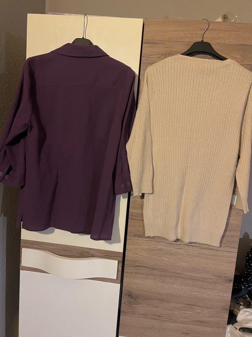 Prodajem lot koji se sastoji od majice i košulje / jaknice, ljubičaste / veličina 40, bež boje. Obje su izrađene od ugodnih materijala, kombinacije pamuka i viskozе. Rukavi su duljine 3/4, što ih čini praktičnima za razna godišnja doba. Komadi se prodaju zajedno kao lot.