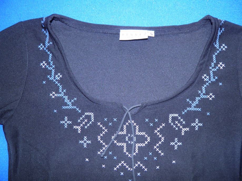 HENNES KOLEKCIJA, U ODLIČNOM STANJU, RASTEZLJIVA. CRNE BOJE SA ZANIMLJIVIM UZORKOM I POLUDUGIM RUKAVIMA. PIŠE VEL.S. PRSA 39, DUŽINA 52, RUKAVI 39 CM. 92% POLIESTER, 8% ELASTIN.
