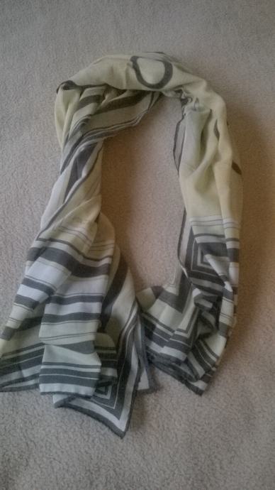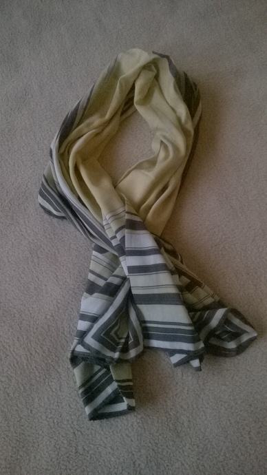KOMPLET MAJICA ŽUTO BEŽ BOJE SA ZATVARAČEM I OBRUBOM SMEĐIM ,VELIČINA M , VISKOZA I ACRYLIC , SA MARAMOM VELIKOM KAO ŠAL U ISTIM TONOVIMA , PAMUK . MOŽE I ODVOJENA KUPNJA , MAJICA 90 KN, MARAMA 100 KN