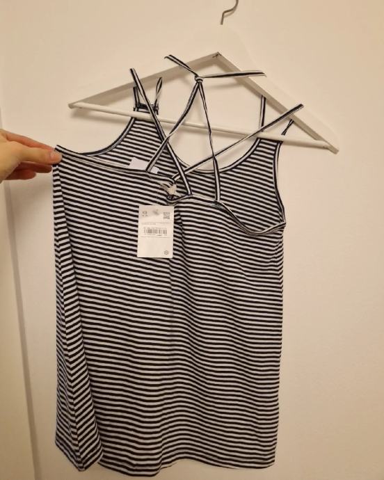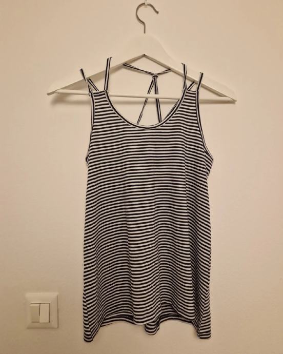 Prugasta (plavo/bijela) majica, bez rukava, križa se na leđima.