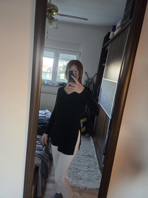 Duža majica pa je više kao tunika, ima prorez na ljevoj strani