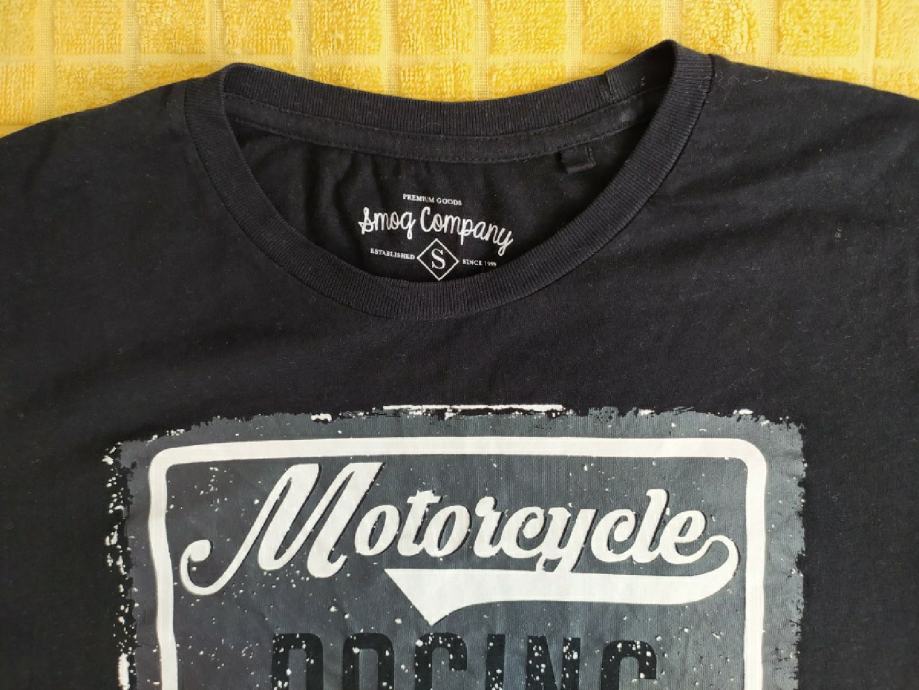 Majica unisex "Smog Company" veličina S. Crna boja s ukrasnim ispisom na prednjoj strani. Made in Bangladesh. Materijal je 100%pamuk. Svaki dan za šetnju, kao casual, u prirodu. Dužina 63.5cm, širina 48cm, ramena 40.5cm, rukav 59.5cm. Nova odlična.