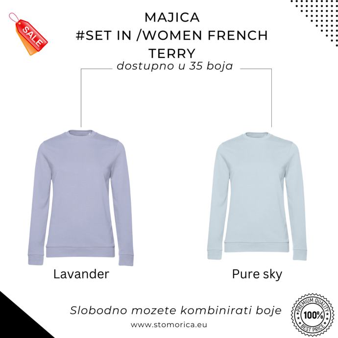 35 ponuđenih boja: "White" - "Black pure" - "Asphalt" - "Grey fog" - "Elephant grey" - "Heather asphalt" - "Heather mid grey" - "Heather grey" - "Heather navy" - "Navy blue" - "Royal" - "Heather royal blue" - "Hawaiian blue" - "Pure sky" - "Lavender" - "Heather purple" - "Radiant purple" - "Red" - "Heather red" - "Pure orange" - "Pink fizz" - "Pale pink" - "Candy pink" - "Melon orange" - "Wine" - "Heather dark green" - "Kelly green" - "Sage" - "Light jade" - "Forest green" - "Pale yellow" - "Solar yellow" - "Desert" - "Nude" - "Millennial khaki" Gramaža: 280g/m²