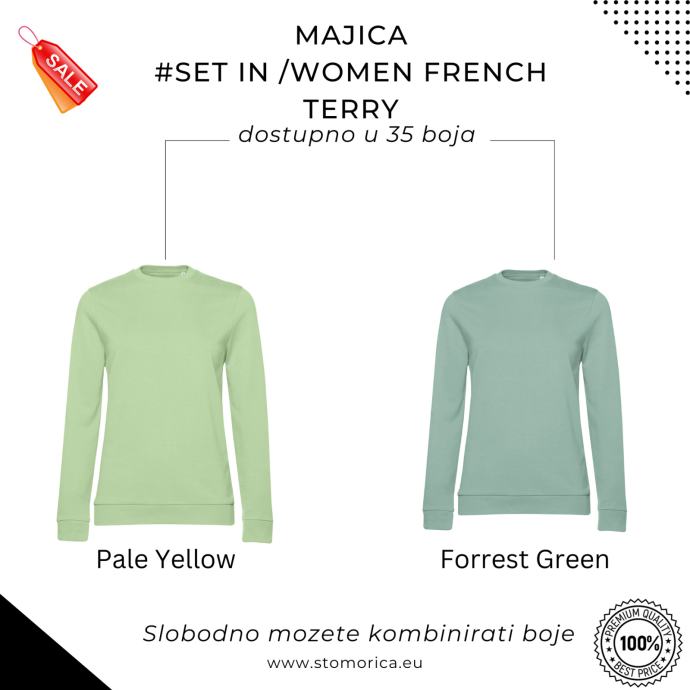 35 ponuđenih boja: "White" - "Black pure" - "Asphalt" - "Grey fog" - "Elephant grey" - "Heather asphalt" - "Heather mid grey" - "Heather grey" - "Heather navy" - "Navy blue" - "Royal" - "Heather royal blue" - "Hawaiian blue" - "Pure sky" - "Lavender" - "Heather purple" - "Radiant purple" - "Red" - "Heather red" - "Pure orange" - "Pink fizz" - "Pale pink" - "Candy pink" - "Melon orange" - "Wine" - "Heather dark green" - "Kelly green" - "Sage" - "Light jade" - "Forest green" - "Pale yellow" - "Solar yellow" - "Desert" - "Nude" - "Millennial khaki" Gramaža: 280g/m²