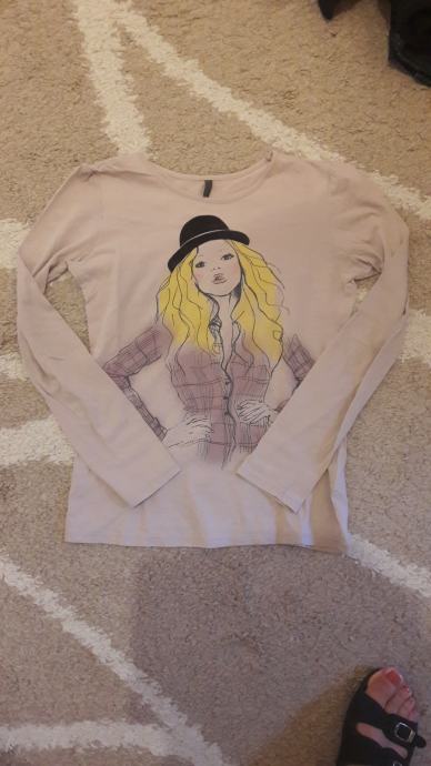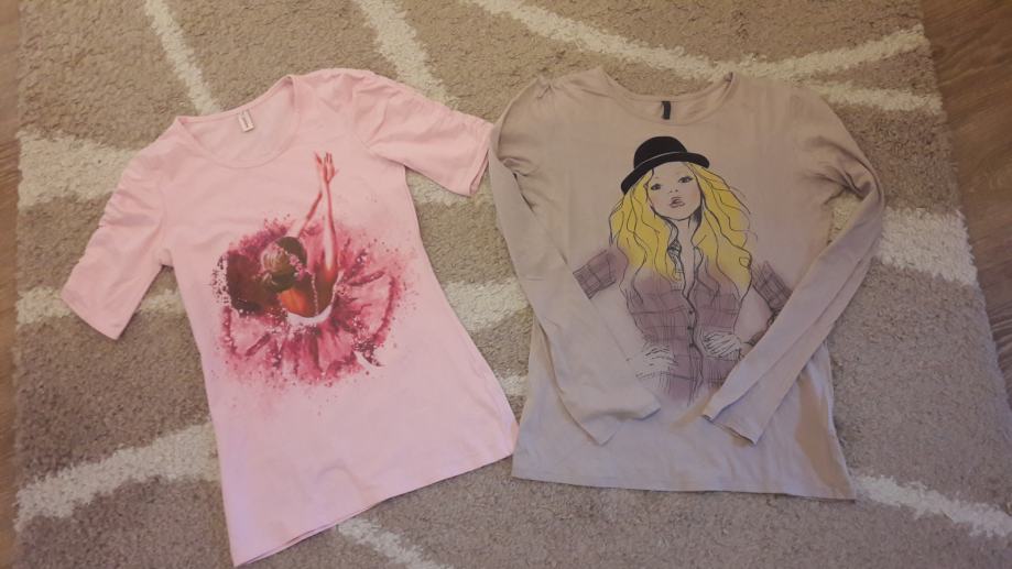 Dvije majice sa aplikacijom. Roza je kratki rukav... fina elastična. Prljavo roza je Benetton ..dugi rukav.