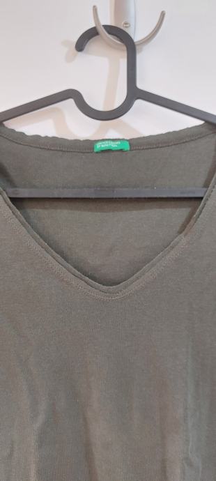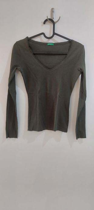 Prodajem maslinasto zelenu Benetton majicu na V-izrez, s dugim rukavima, pamučnu.