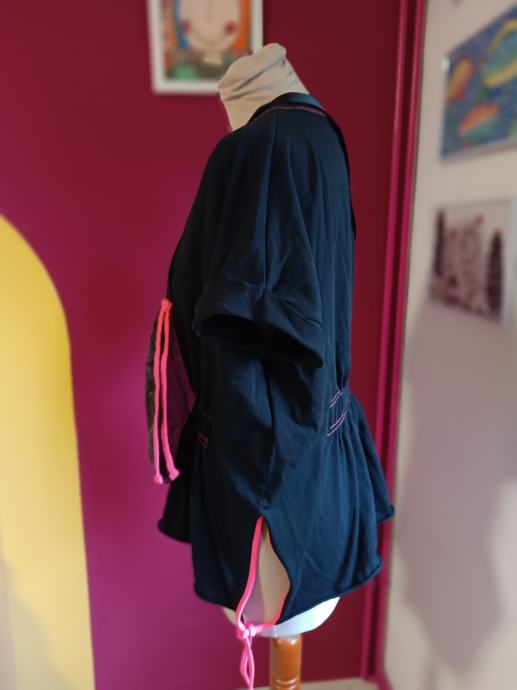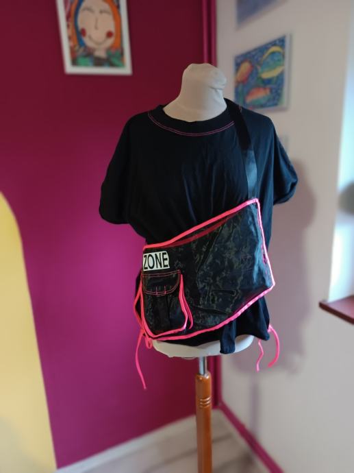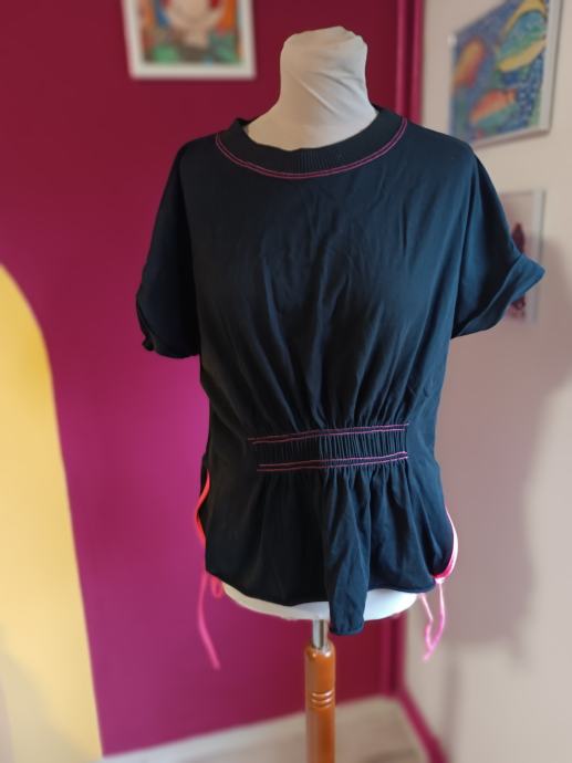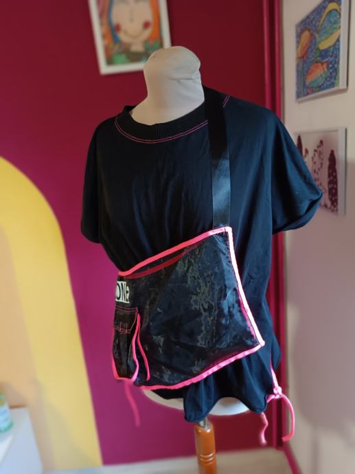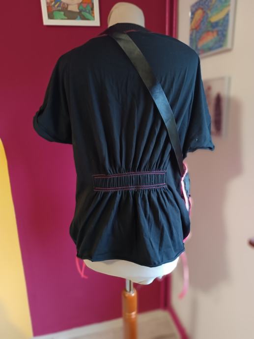 predivna i neobična majica koja ima i prozirnu torbicu s rozom bojom. Ona se može skinuti i nositi odvojeno od majice koja je neobičnog kroja. Najbolje za veličinu 40.