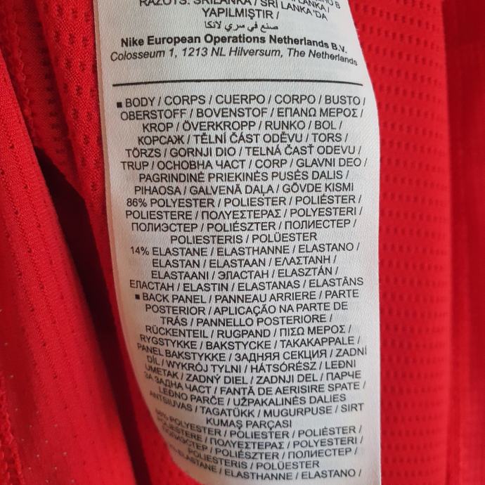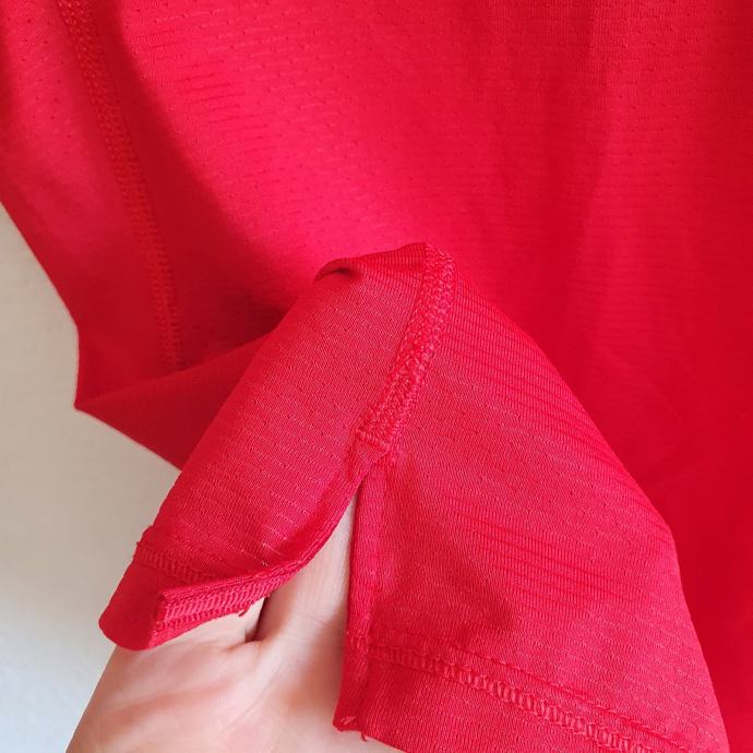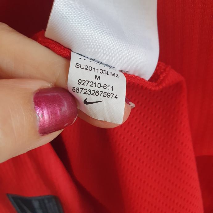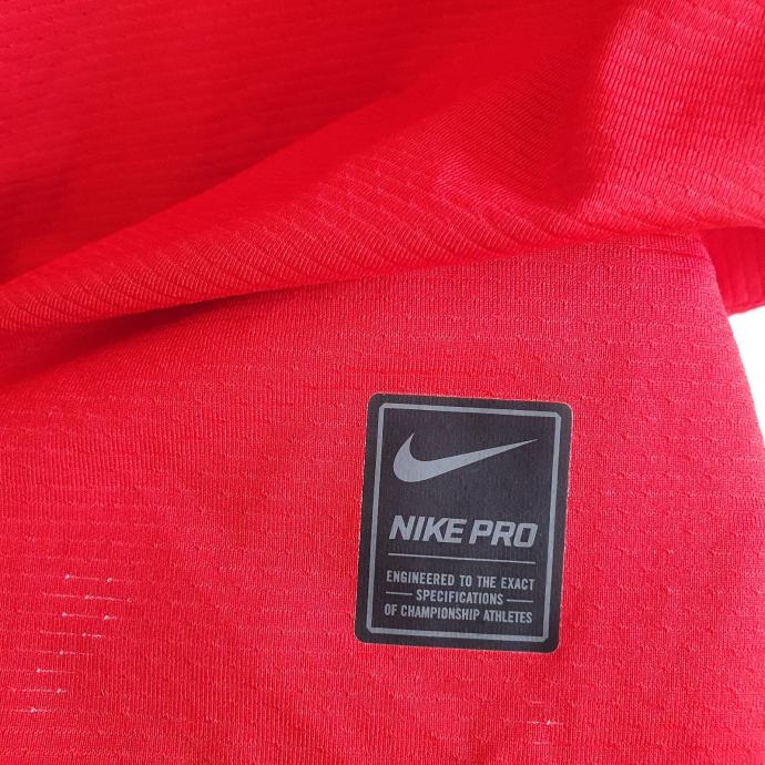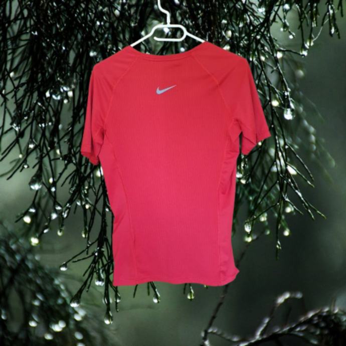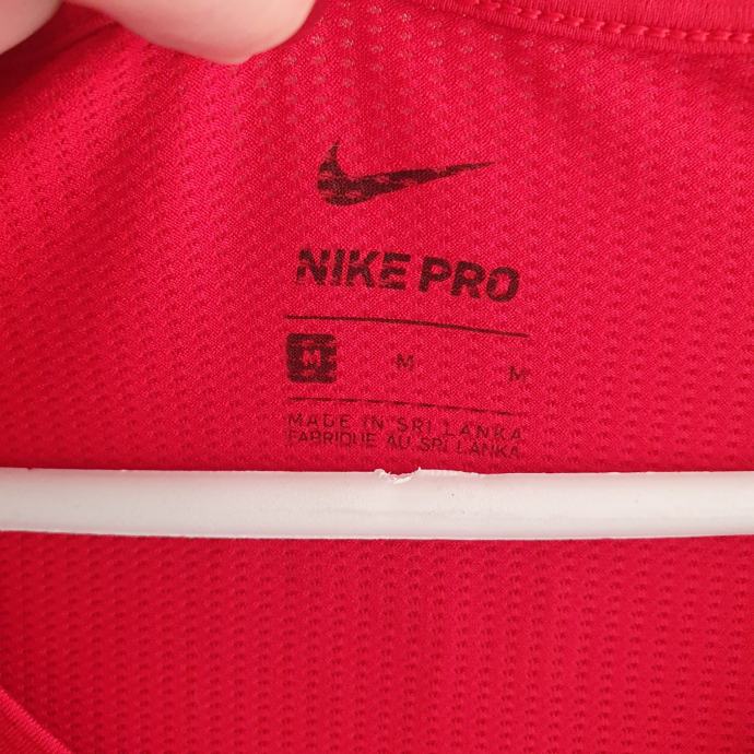 Crvena Nike majica M. Mjere su prsa idu do 42 cm, dužina 66 cm. Sastav je 86% poliester, 14% elastin.