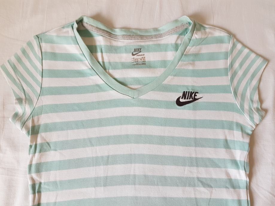 Nike majica, na svijetlo zeleno bijele pruge. Nošena, očuvana, veličina 38 (M).